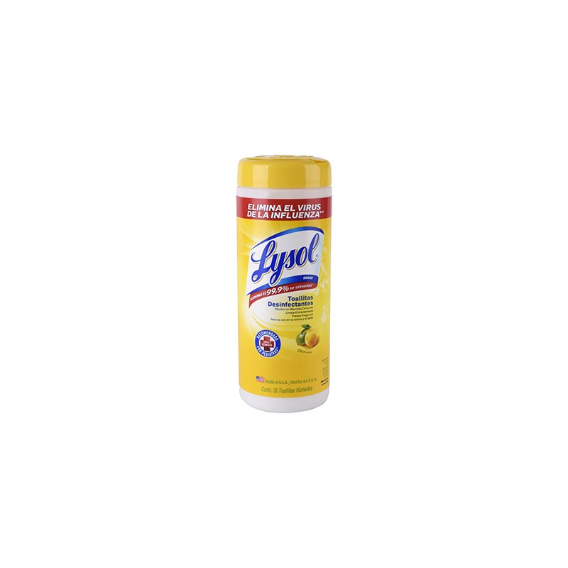 Las Toallas Desinfectantes Lysol con aroma Citrus, limpian y eliminan hasta el 99.9% de los gérmenes, remueven alérgenos, manchas y el virus de la influenza. El envase cuenta con 35 toallas y tiene una cómoda presentación con dispensador que permite sacarlas una a una y utilizarlas fácilmente en cualquier momento que se requieran. Es un producto recomendado por pediatras que se puede emplear en superficies como muebles, pisos, baño, cocina o aparatos electrónicos.