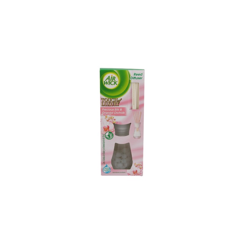 Viva la experiencia del delicioso aroma de Air wick. Deje que la fragancia a orquídea oriental y sedas envuelva su hogar. Puede utilizar las varitas naturales de ratán para esparcir delicadamente la maravillosa fragancia creando un agradable ambiente que aromatiza y decora su hogar.