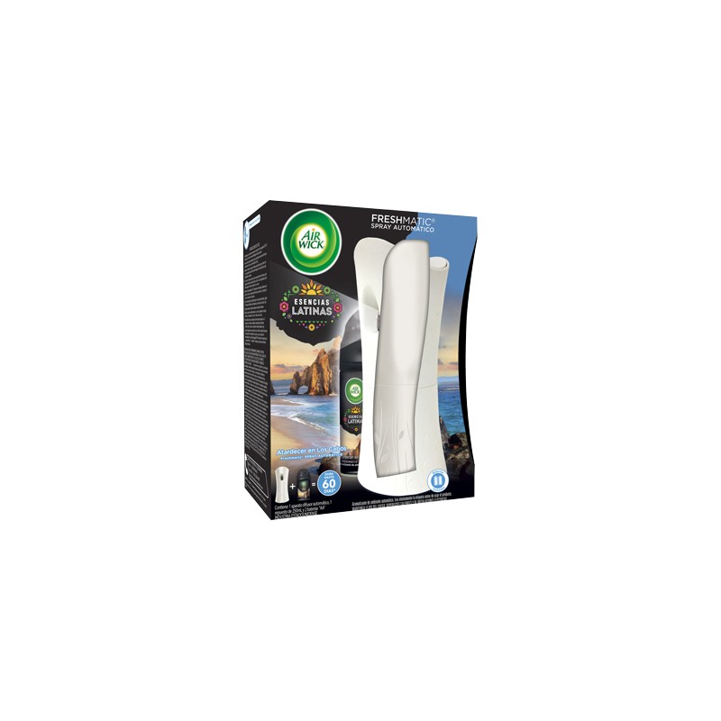 Aromatizante Freshmatic Airwick aroma Atardecer en los Cabos contiene 1 aparato y 1 repuesto de 250 mililítros.