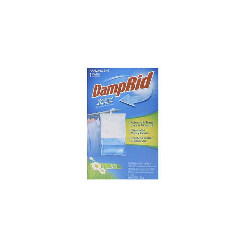 Gancho absorbedor de humedad con aroma fresco de 396 gr, está hecho a base cloruro de calcio color blanco, es excelente para atrapar el exceso humedad en el ambiente. Disponible en un gancho colgante que permite conservar las telas, ropa y artículos de cuero por mucho más tiempo de lo esperado. Ofrece más áreas limpias y frescas por mucho más tiempo. Su envase plástico se encarga de conservar en buen estado el contenido. Es excelente para baños, lavanderías, oficinas, cocinas, armarios de ropa o almacenamiento y embarcación.