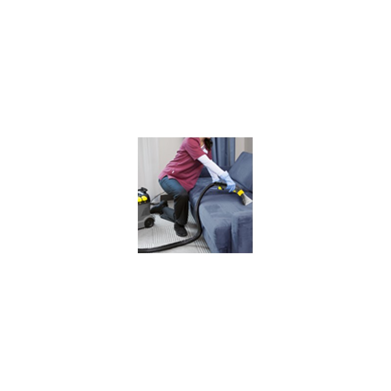 Equipo de pulverización y aspiración combinadas potente y compacto para la limpieza de pequeñas superficies de moqueta. Ofrece el mejor resultado posible de retroaspiración de todos los equipos de la competencia comparables. El puzzi 8/1 c permite volver a pisar rápidamente las superficies textiles. El cable de red se puede colocar en el gancho para cables desmontable. Soporte de boquillas para suelos integrado en el equipo.