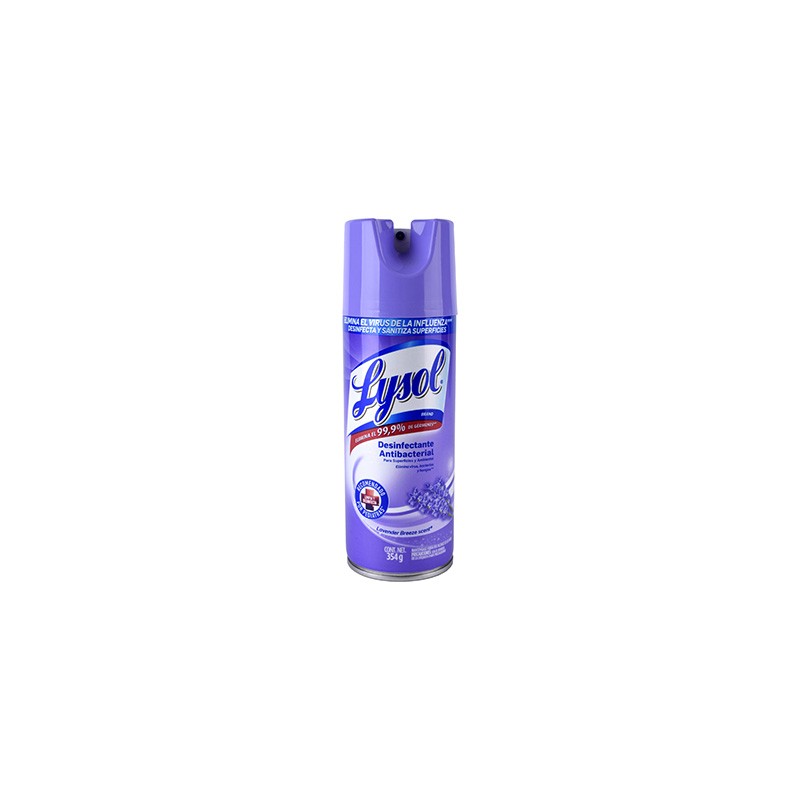 El Desinfectante Antibacterial Lysol de 354 gramos, elimina hasta el 99.9% de los gérmenes, virus de la influenza, bacterias y hongos, causantes de diversas enfermedades. Su presentación en aerosol desinfecta y sanitiza cualquier superficie fácilmente, además de combatir el moho y evitar la propagación de olores desagradables que producen algunos tipos de bacterias en el aire. Se puede emplear en superficies duras como muebles, artículos de baño, cocina o aparatos electrónicos. Es un producto recomendado por pediatras.