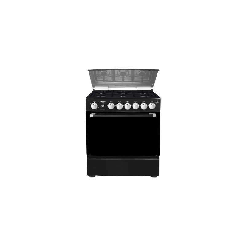 Estufa de piso 30 koblenz color negro mate con nueva y exclusiva cubierta de cerámica ceramik. Capelo curvo de cristal templado sanftglas, que no se azota. Parrillas de fundición. Cuenta con 6 quemadores: 4 estándar, 2 jumbo superburner. Perillas lyon plata c/base pintada. Encendido electrónico de botón en quemadores y horno. Puerta panorámica humo. Jaladera puerta de horno primesteel en color negro. Termocontrol en el horno. Luz en el horno. 1 parrilla en el horno.