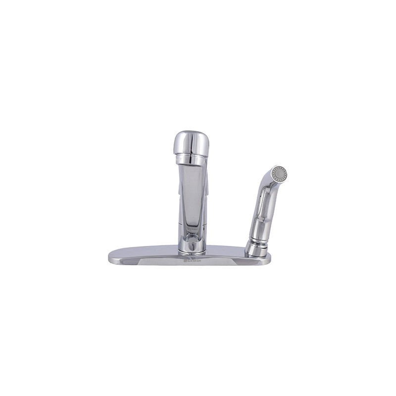 Mezcladora para Cocina Builders de 8 pulgadas color Plata de Glacier Bay, su estructura de latón y acabado en cromo brillante es resistente a la corrosión. Su diseño incluye cuello giratorio de 360 grados que brinda mayor comodidad y facilidad durante el uso; regula la temperatura del agua con solo girar la palanca a los lados o subir y bajar para abrir y cerrar, brinda un alto rendimiento sin goteo, su pieza central mide 20.3 centímetros y es compatible con fregaderos de tres orificios, incluye manguera con rociador de conexión rápida. Sus cartuchos de discos cerámicos ayudan a evitar goteras, requiere dos líneas de suministro de 1.27 centímetros.