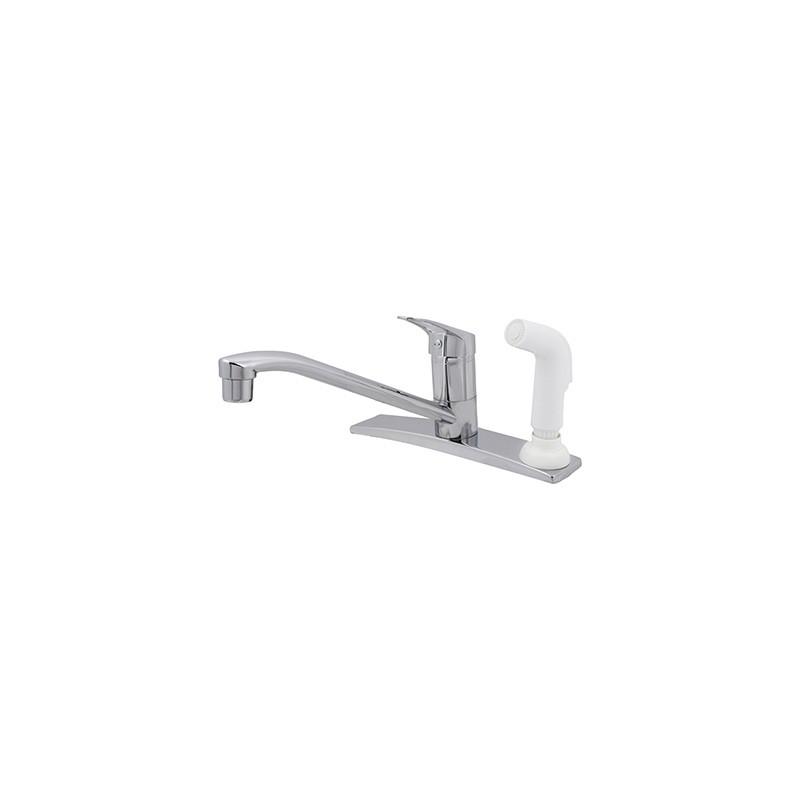 Llave mezcladora para cocina Eva 8 pulgadas cromo pulido Flowell, cuenta con rociador extraíble que facilita la limpieza de la vajilla por su sistema de rociado en spray. Es compatible con tarjas de tres orificios centrales de 20.3 cm, su cuerpo de latón brinda gran resistencia ante el impacto y su recubrimiento de cromo evita la formación de óxido, incluye cartucho de disco cerámico. Trabaja en presión baja, su sistema de monomando facilita la apertura y cierre del paso de agua en un solo movimiento, cuenta con discretos indicadores de temperatura en rojo y azul.