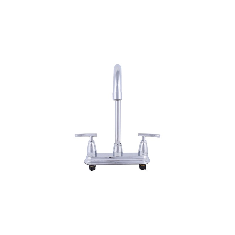 Mezcladora para Fregadero Rugo, cuenta con cuello giratorio de 360 grados, lo que facilita la limpieza de la pila. Su charola y los manerales están recubiertos de latón, material que brinda una alta resistencia al agua y evita la corrosión, además, cuenta con pico apilable que facilita la limpieza de la rejilla. Sus dos manerales cierran a 90 grados mejorando la practicidad al momento de usarlo. Su fabricación con materiales de alta resistencia en acabado cromo, brinda una gran vida útil y alto rendimiento.