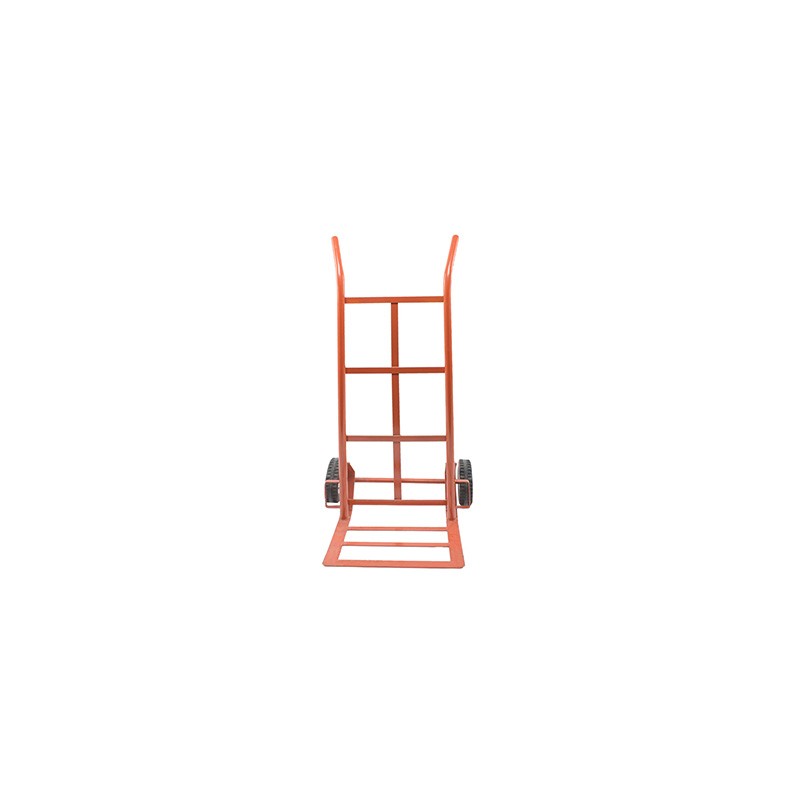 El diablo de carga cuenta con un diseño tubular de acero pintado de color naranja para un mejor manejo e identificación. Sus ruedas de caucho permiten una mayor vida útil y además transportar los objetos pesados en cualquier terreno con seguridad y rapidez. El diseño está creado para darle un mejor manejo en el traslado con los objetos pesados y resistencia a los golpes en el chasis o impactos en las ruedas. Soporta 200 kg.