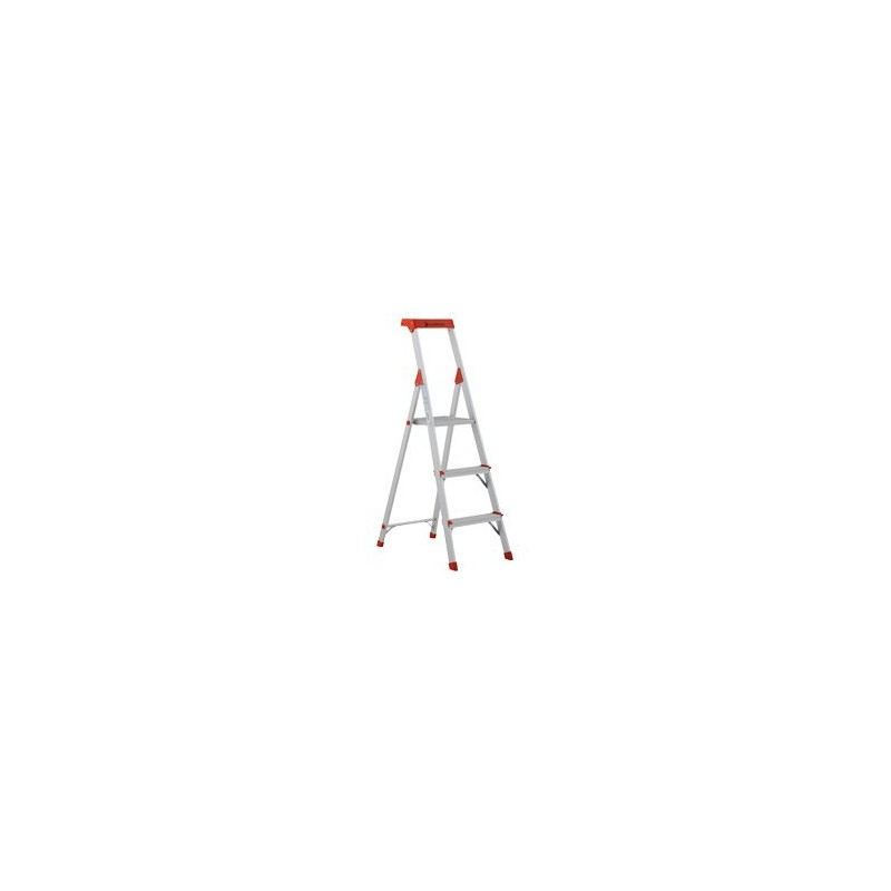 La Escalera Cuprum de Tijera Aluminio con Plataforma de 3 pies de altura. le permite al usuario un alcance máximo de trabajo de 2.86 metros y su capacidad de carga es de 175 kg máx. Cuenta con base plastica porta herramientas y amplia plataforma de trabajo. Tacones con suela de goma y peldaños con superficie antiderrapante. T-II.
