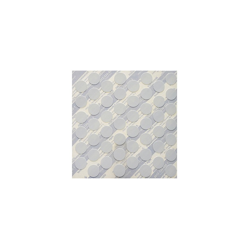 Tapa tornillo de melamina. Color blanco con pegamento (es decir preengomada). Sirve para tapar ranuras u orificios hechas por el taladro. Se quita con cuidado de la plantilla y se coloca en el lugar indicado con los dedos. Plantilla con 52 piezas. 0. 46 mm de espesor. Peso: 8 gr.