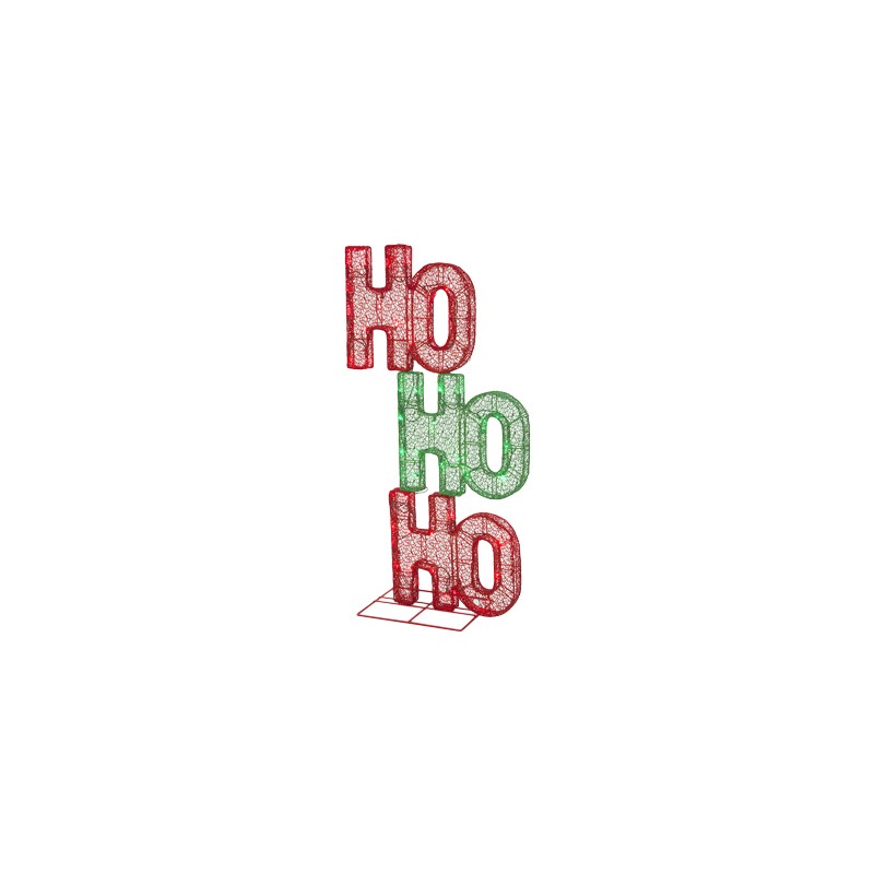 Esta temporada recibe a tus invitados con la señal navideña de HO HO HO iluminada con 50 luces LED, tiene una medida de 1.22 metros, 2 HO en color rojo y 1 HO en color verde. Ideal para decorar la entrada de tu casa o tu jardín. Para uso interior o exterior.